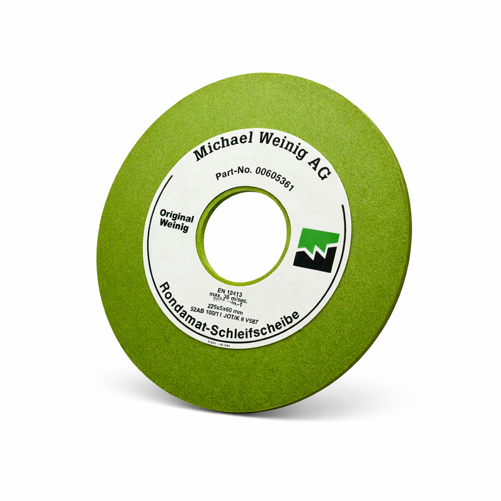 Original Weinig Rondamat Edelkorund Schleifscheibe zum Einsatz in Weinig Rondamat Schleifmaschinen, Schärfmaschinen oder ähnlichem für Gerad- und Profilmesser. Edelkorund ist da Standardschleifmittel für HSS und Stelite.